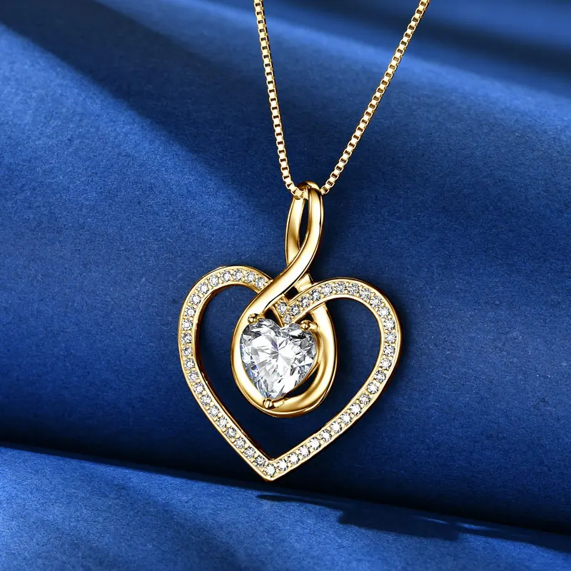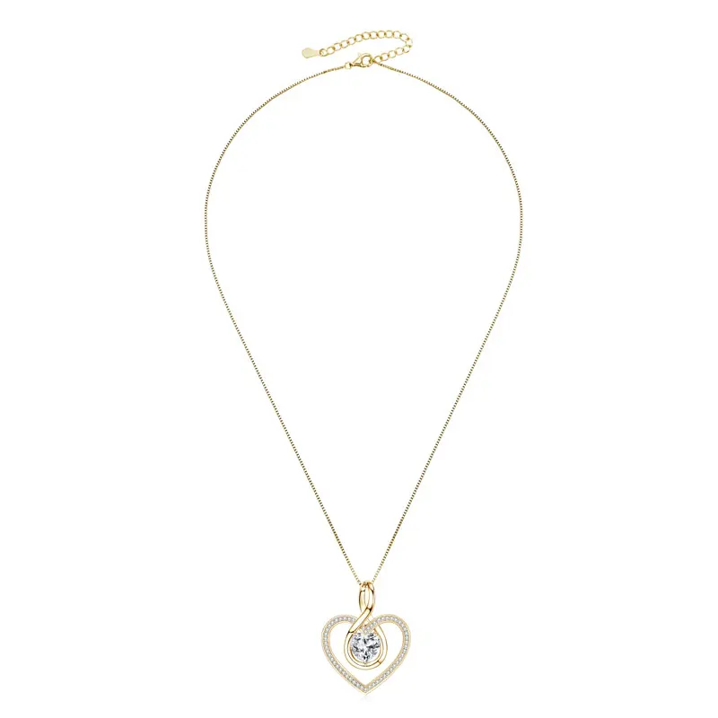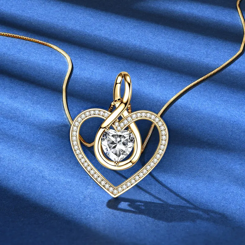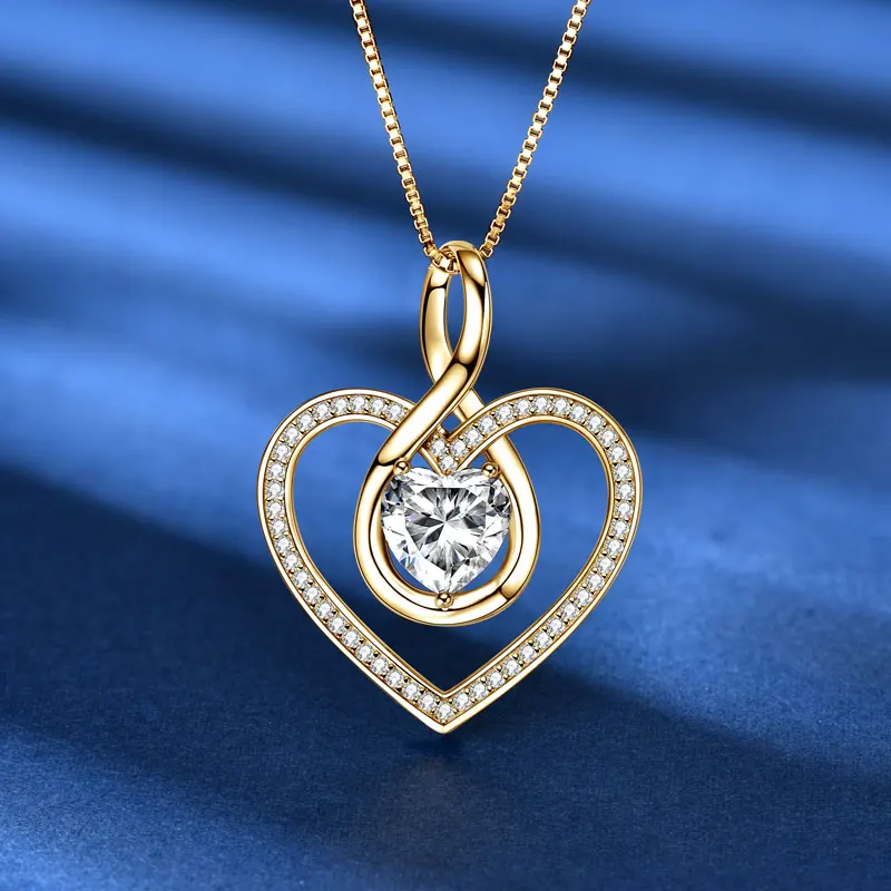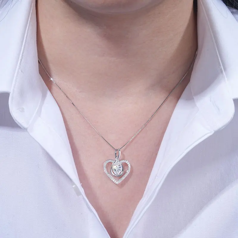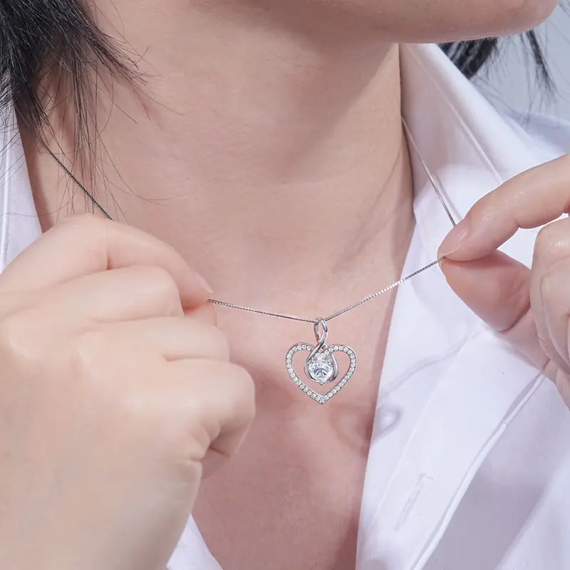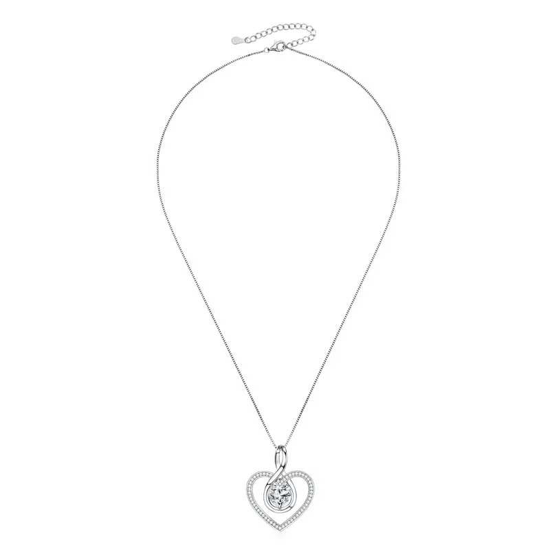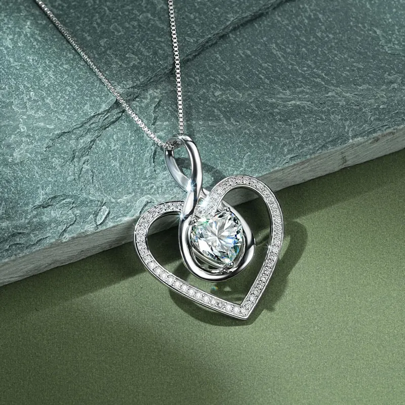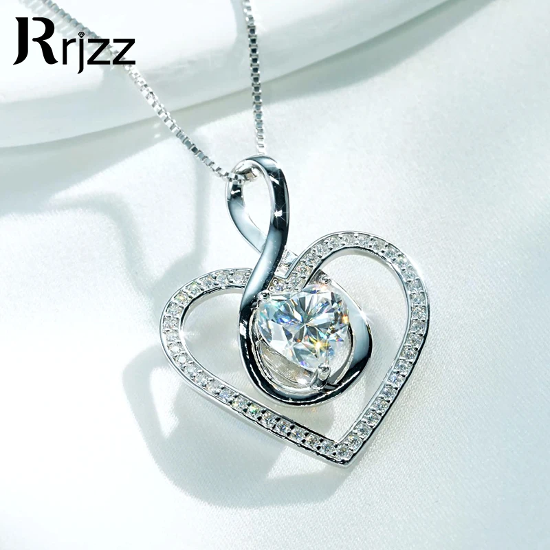 Rrjzz Sparkling Heart Shaped Moissanite Pendant Necklace 925 Sterling Silver Trendy Infinity Design Women Necklace Chain Jewelry